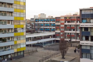 Here is a great view of Golden Lane Estate with the swimming pool at its centre. Work is due to start any minute on restoration. There is some nervousness about this. The plans involve making some significant changes. At present it is easy to walk around the site at two levels. The lower level space between the sports hall and the swimming pool is due to be blocked in with a dance studio. The roof will also have photovoltaic panels and all of the windows will be replaced with double glazed versions. It should be good but will the windows look right or will they be out of character? Will the dance studio destroy the lightness and fluidity of the current arrangement? Will the panels on the roof look ungainly and inappropriate and will they generate enough electricity to make their installation worth while. The problem with much-loved places is that they lead to conservatism from those who want to preserve a quality which it is feared will be lost with the improvements. Has the Festival Hall been ruined by its new stage and the removal of the acoustic canopy? Is the Barbican worse off because of its orange paint work. Golden Lane Leisure Centre will be a test case for matching elegant restoration with the joy of moving through water. (Picture: Tim Crocker).