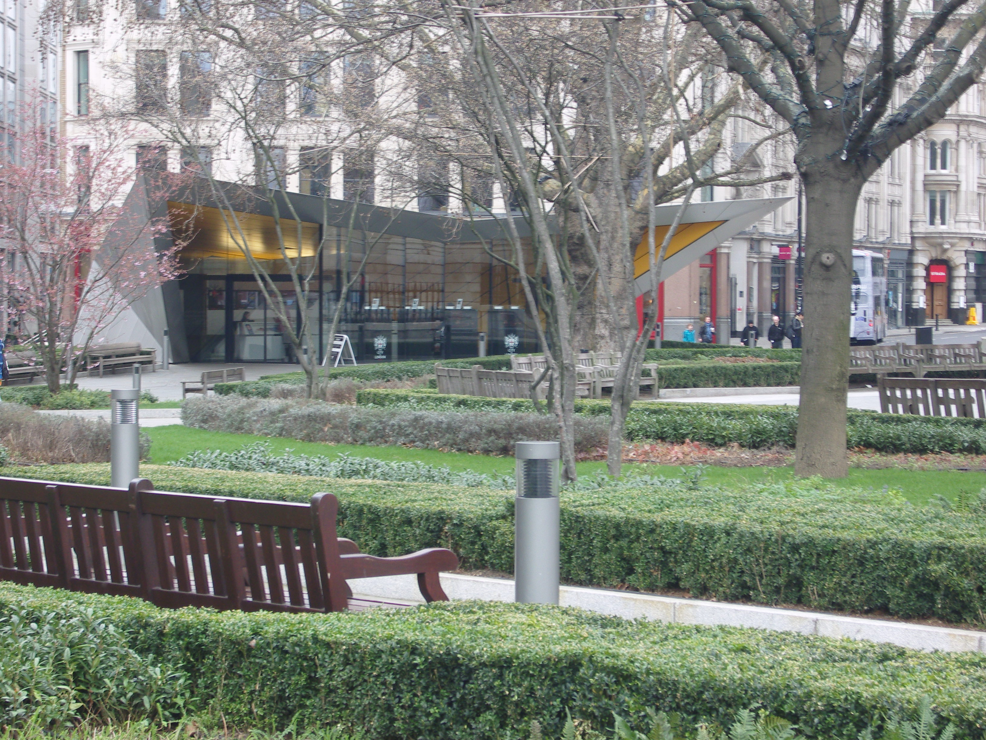 The new Tourist Information Centre opposite St Paul’s Cathedral designed by Make Architects with new landscape by the City of London in the foreground. This deconstructed building has a yellow interior and a stainless steel exterior. This now complements One New Change immediately opposite.