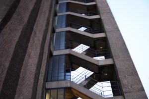 The Barbican YMCA has one of the best fire escapes in the City. This is at the rear of the building, easily viewed from the Barbican flats. It’s a real pity that the current users of this building have so little interest in the design.
