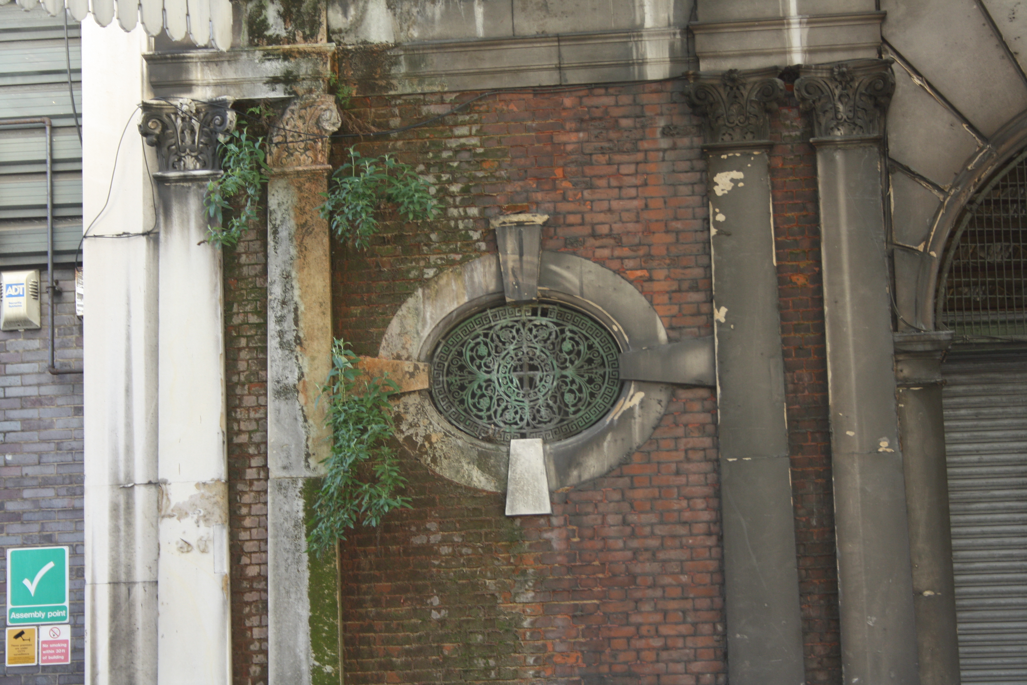 Discover what lurks behind the decaying facade of Smithfield. The General Market and Fish Market at Smithfield have been closed for twenty years awaiting a decision on refurbishment. However, walk around the area and you will find that the main gates are open again not as a place for selling apples but for the storage of cement as part of the Thameslink refurbishment. Have a look inside and you will see the remains of the market stalls, the hooks for hanging produce and the wooden offices suspended above the market. A London market unchanged for maybe fifty years.