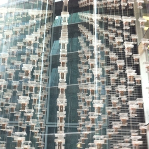 An installation generating light through the movement of air across the building is showcased here at the Ropemaker Building on Chiswell Street.