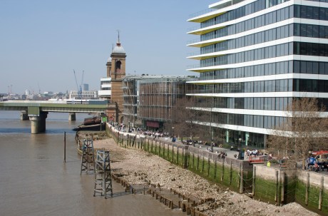 Completion of Watermark Place and the riverside walkway has created a pedestrian-friendly walk to rival that on the South Bank. The monumental Mondial House telephone exchange building, famously modelled on a typewriter key board and clad in white fibre glass, has given way to a building set back from the river and partly clad in weathered oak reminiscent of the medieval remains still visible on the foreshore.