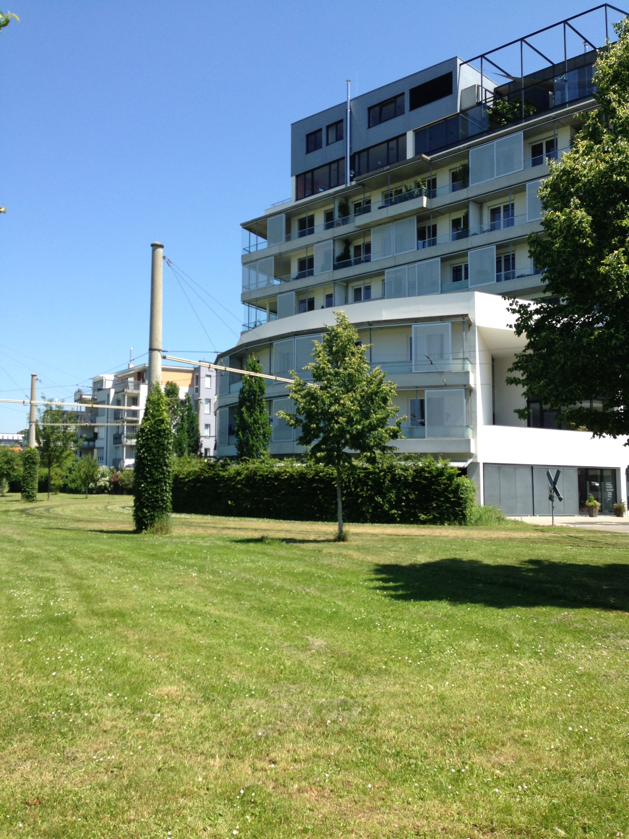 Freiburg has the benefit of being an affluent city as well as a university research centre. It has had a stable council with the same Green Party mayor and head of planning for the past thirty years. It has also established a cost-effective public transport system which is popular with many of its citizens and it has built tram ways which are green in every sense of the word as the pictures below illustrate.